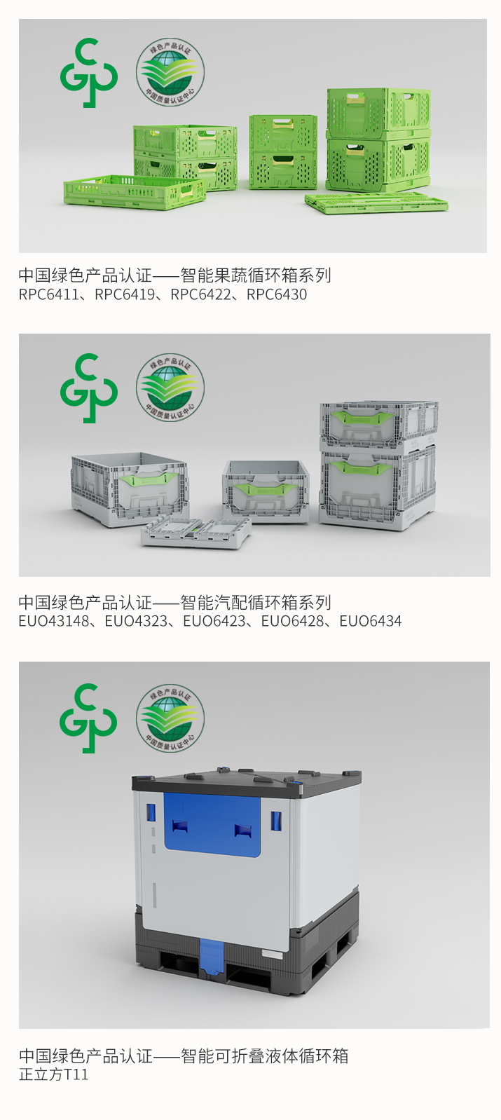 近日,受市场监督管理总局认证监管司和国家邮政局市场监管司的委托,由中国绿色产品认证与标识体系秘书处承办——“快递包装绿色产品认证推进活动” 上,市场监管总局认证监管司、国家邮政局市场监管司和交通运输部服务司分别对快递包装绿色产品认证制度、快递包装绿色转型政策、标准化物流周转箱推广应用工作政策进行了解读。箱箱共用智能生鲜果蔬循环箱、智能汽配循环箱、智能可折叠液体循环箱三大系列10款产品通过中国质量认证中心CQC——“中国绿色产品认证”,成为首批获颁证书的“标准化物流周装箱”企业。
