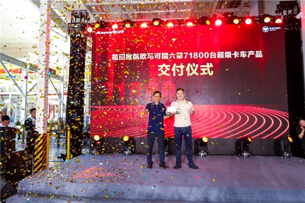 活动同时,在长沙主会场,福田欧航欧马可国六第71800台超级卡车也成功交付行业客户。