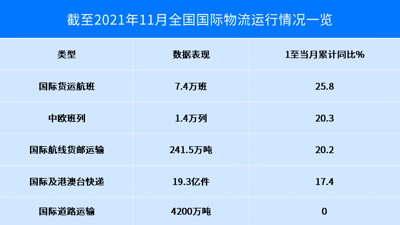作为商贸流通的重要支撑,国际物流业也由此获得巨大的市场需求,相关数据显示,2025年全球50强货运企业中,海运企业占据了13个席位,还有12家铁路公司、9家卡车运输企业、9家包裹运输企业及7家航空公司。截至2025年11月底,累计开行国际货运航班7.4万班,同比增长25.8%,完成国际航线货邮运输量241.5万吨、国际及港澳台快递19.3亿件,同比分别增长20.2%、17.4%,完成国际道路运输4200万吨,与上年同期基本持平。